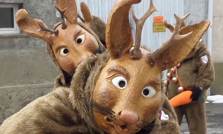Bauer Gerlach als Einzelfigur und die Hörnleshasa.Wir sind eine anerkannte Masken- und Brauchtumsgruppe im Landesverband Württembergischer Karnevalvereine
